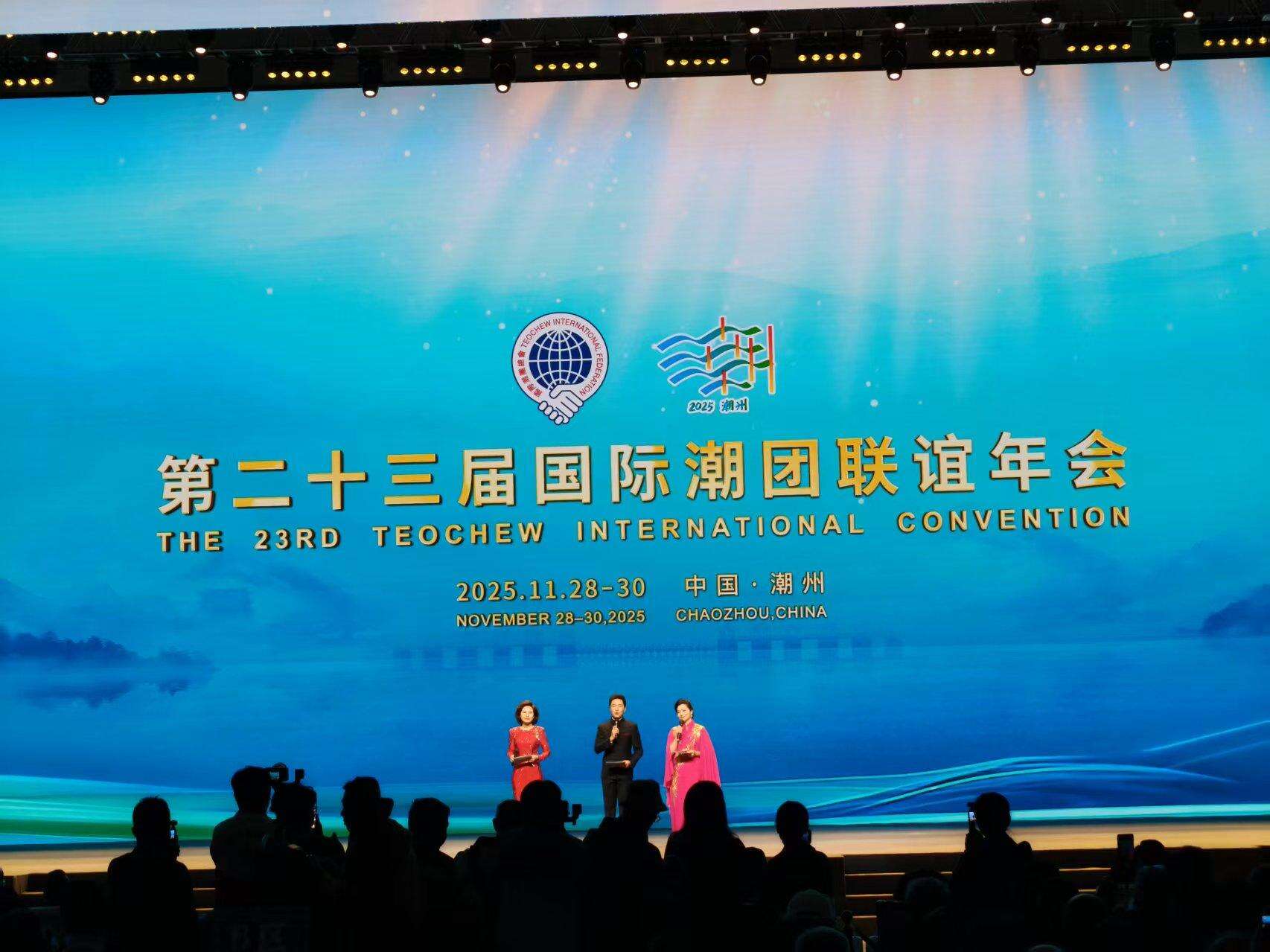 11月29日,以“根脉亲 家国兴”为主题的第二十三届国际潮团联谊年会在潮州国际会展中心开幕。来自全球165个潮人社团的近1800名代表跨越山海、齐聚一堂,在归乡之旅中寻根脉、叙乡情、兴家国、谋未来。