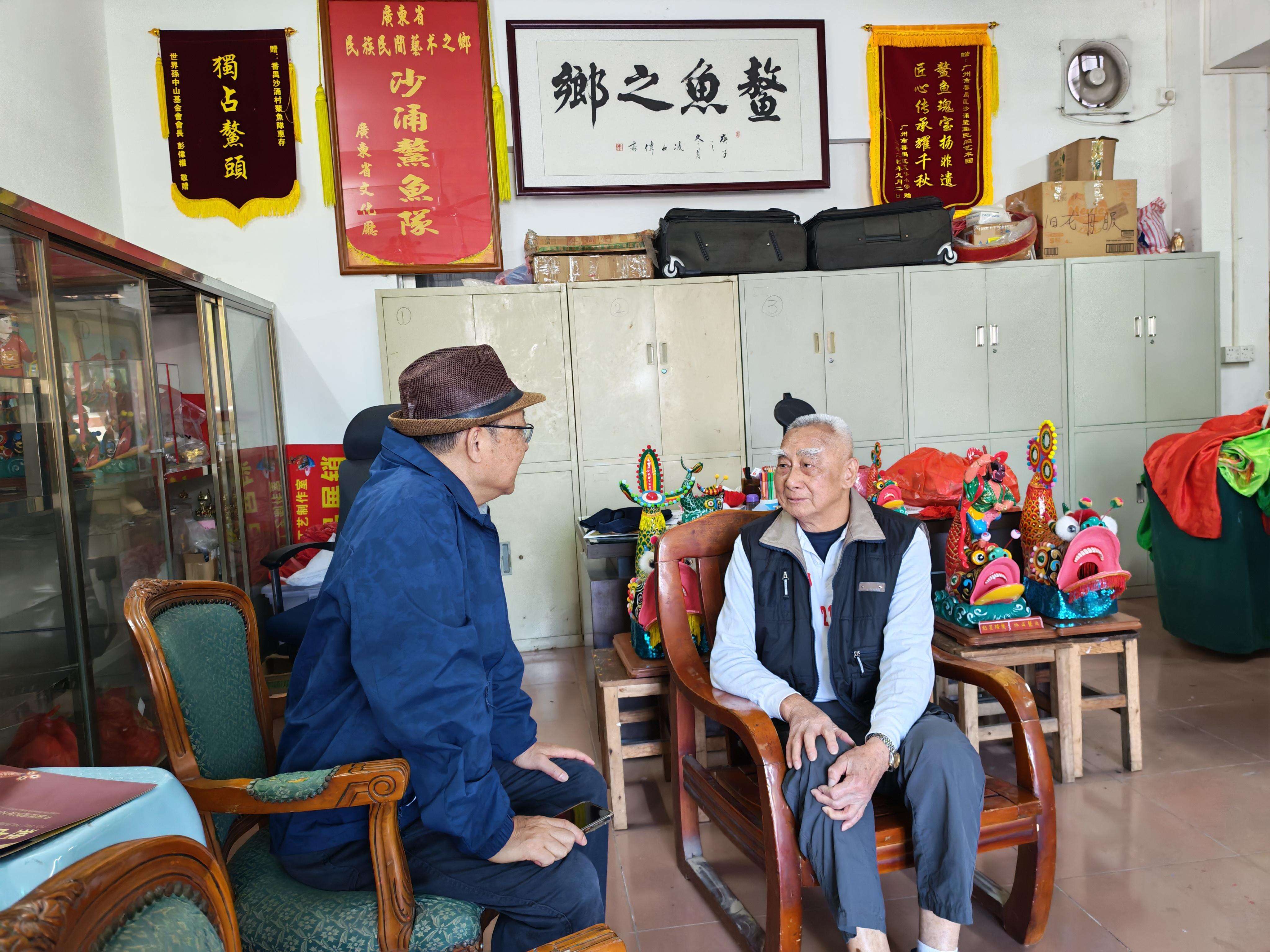江炳贤,沙涌村老书记,生于1943年,八十三岁高龄,须眉皆白,但步履轻松,腰板挺直。递名片给我:名头为沙涌鳌鱼队队长。