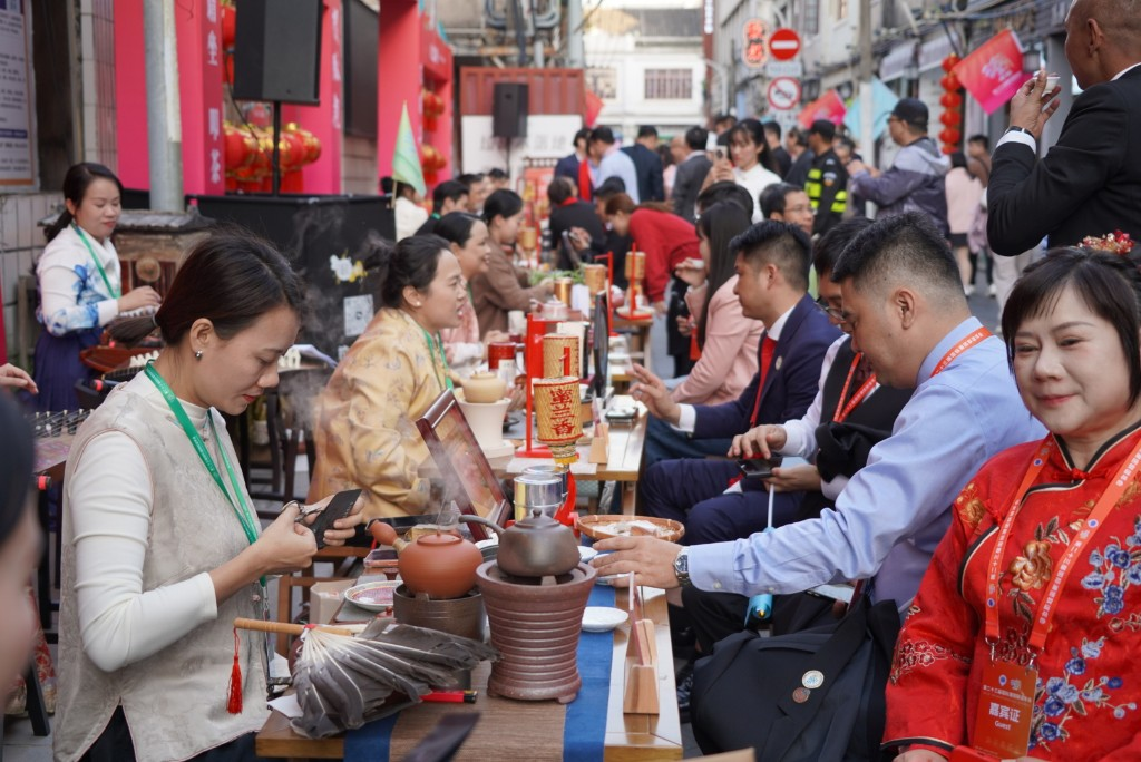 Art and Culture | The 23rd Teochew International Convention was held in Chaozhou from November 28 to 30, bringing together nearly 1,800 representatives from 165 Teochew associations worldwide who returned to their ancestral home from afar to celebrate their shared heritage. On the afternoon of November 29, an immersive cultural experience unfolded vibrantly in the ancient city, featuring lively lion dances, graceful carp dances, and the resonating beats of the 24 Solar Terms drums. Centered around six interactive elements—welcoming ceremonies, tea gatherings, local cuisine tasting, leisurely strolls, opera performances, and specialty shopping—the returning Teochew descendants rediscovered cherished memories of home in one familiar scene after another.#artandculture
