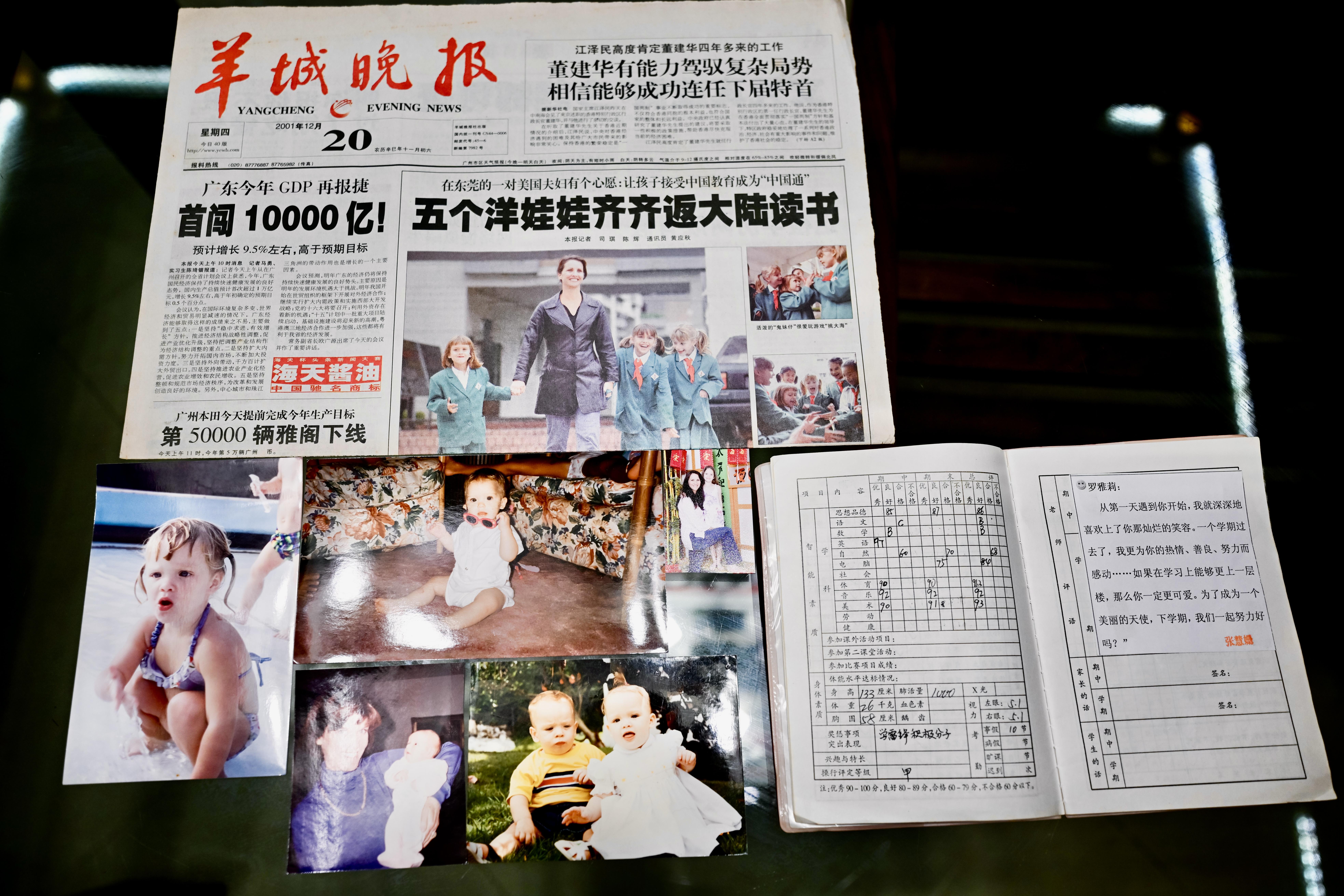 2001年年底,《羊城晚报》头版登了一篇题为《五个洋娃娃齐齐返大陆读书》的报道。配图中,一位金发碧眼的美国妈妈牵着“洋娃娃”们,走进东莞一所本地小学。20多年过去,这家人又“出名”了——小女儿阿菊(中文名罗雅莉,网名“阿菊Addy”)作为自媒体博主,在视频《24年前,洋人登上羊城晚报》中讲述了一家人在中国的故事,这条视频播放量达400多万,收获逾10万点赞、上万条留言。