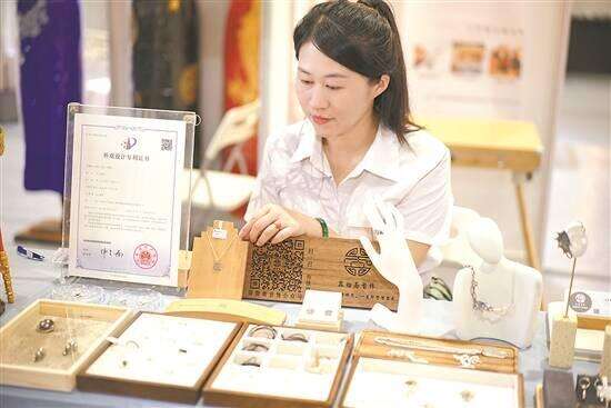 初到唐家古镇,赵倩便从本地风物中捕捉灵感,将珠海非遗茶果化为银饰创作的主题。她打造出一对精巧别致的茶果耳环——叶片舒展,脉络细腻如生;两枚茶果缀于其上,饱满莹润。在这方寸之间,她以錾刻工艺细细雕琢,一凿一刻皆见功力。该作品不仅荣获国家外观设计专利,更摘得珠海民间工艺银奖。