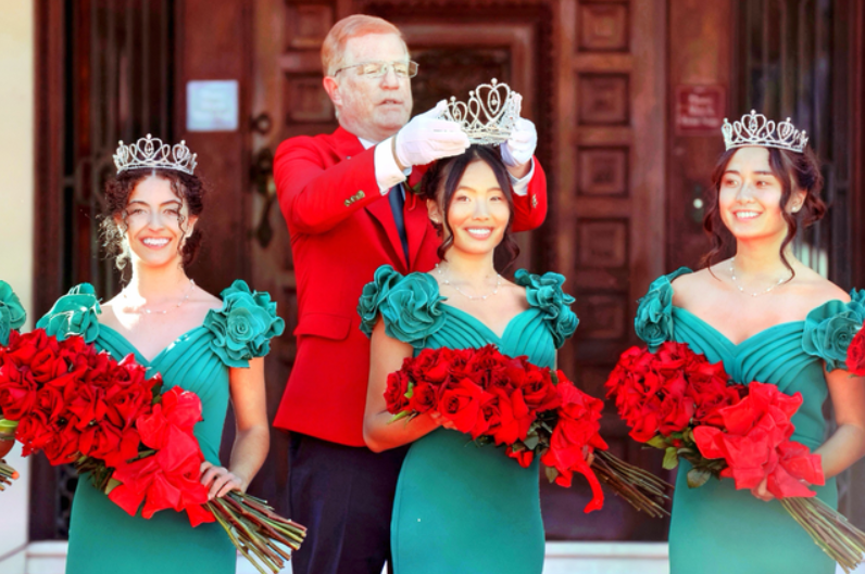 10月28日,帕沙迪纳玫瑰宫(Tournament House)门廊前掌声雷动,亚凯迪亚高中华裔学生郭睿恬(Serena Guo)在加冕典礼上正式当选第107届玫瑰皇后。