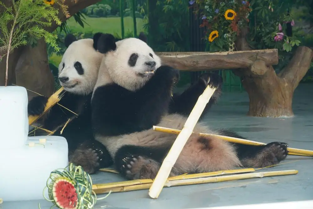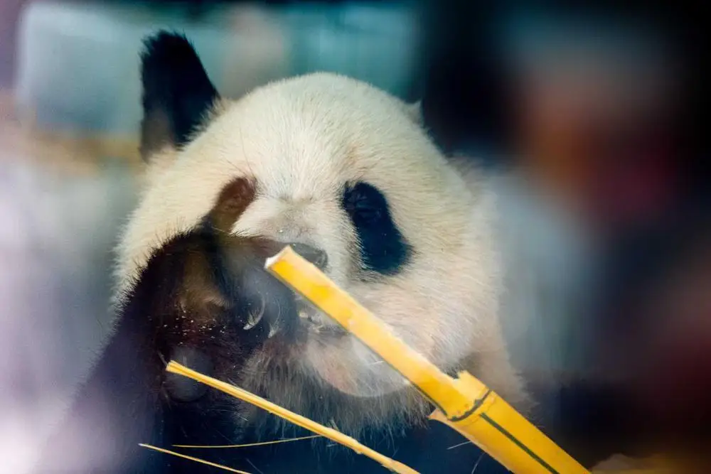 "A newborn panda weighs one hundred grams—just like two eggs!" Inside the glass enclosure of the new giant panda pavilion at Guangzhou Zoo, the giant panda Youyou leisurely chomps on bamboo. Outside the enclosure, a man in a security guard uniform is explaining fun facts about pandas in fluent English to foreign visitors.