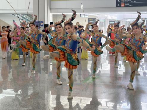12月22日上午,汕汕高铁汕头南至汕头站段正式开通运营。在首趟列车抵达汕头时,欢快的锣鼓声和音乐声穿透熙攘的人流,引得往来旅客纷纷驻足——英歌舞表演者双棒翻飞、步伐刚劲,潮州大锣鼓的鼓点铿锵有力、雄健豪迈,潮剧选段与潮州歌曲悠扬婉转、轮番唱响……传统与现代交织的快闪表演,将现场氛围一次次推向高潮。