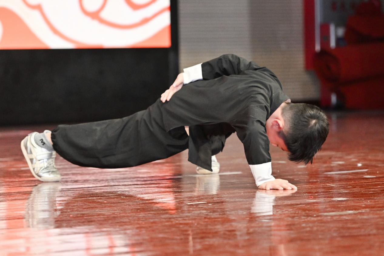 The youngest performer was seven-year-old Huang Tiantian, an inheritor of the provincial intangible cultural heritage Nanzhi Quan. Despite his young age, he completed 60 single-handed, double-fist, and two-finger push-ups in one minute, followed by a powerful set of Nanzhi Quan. His performance offered a glimpse into the future of traditional Chinese martial arts.