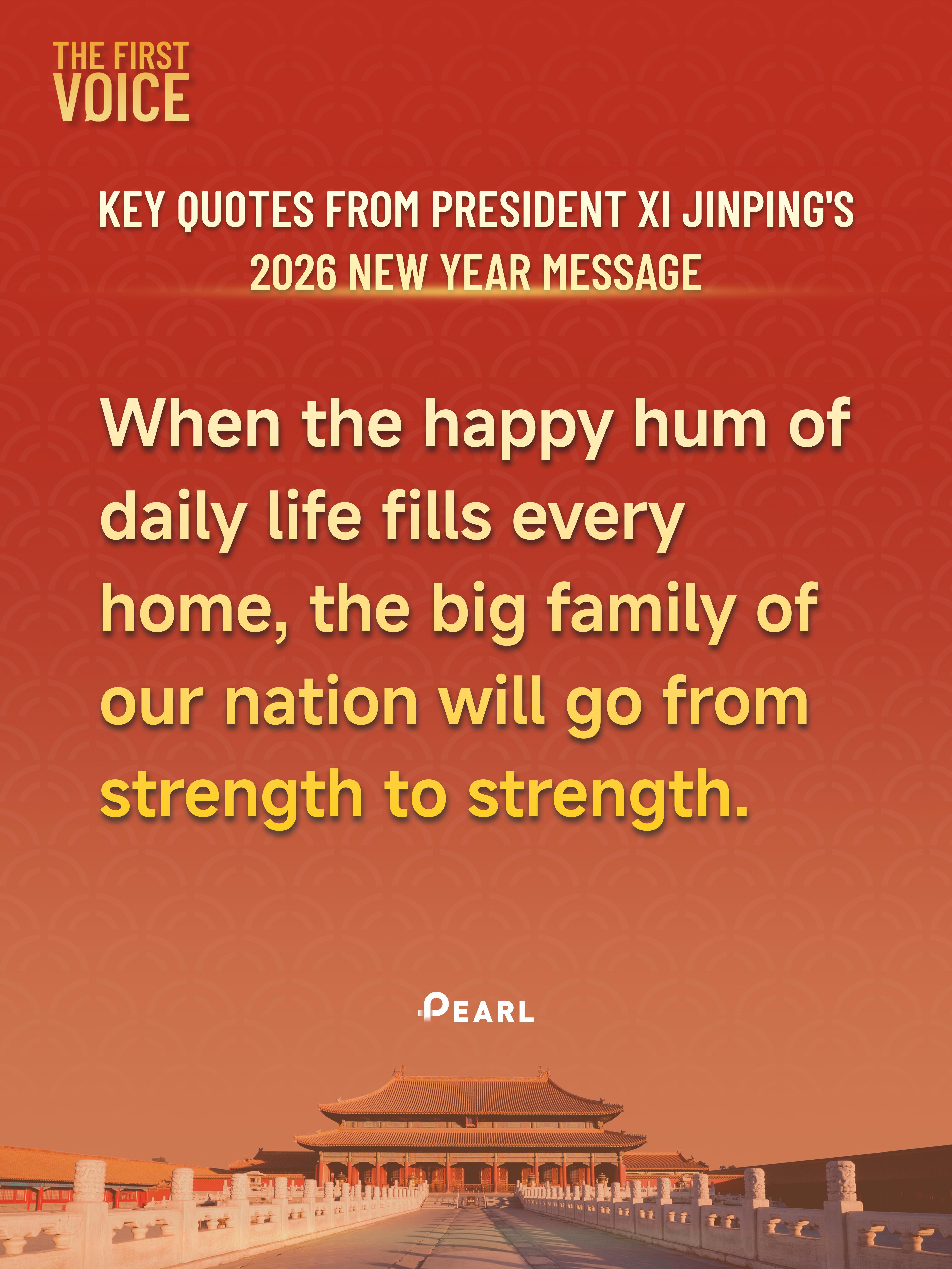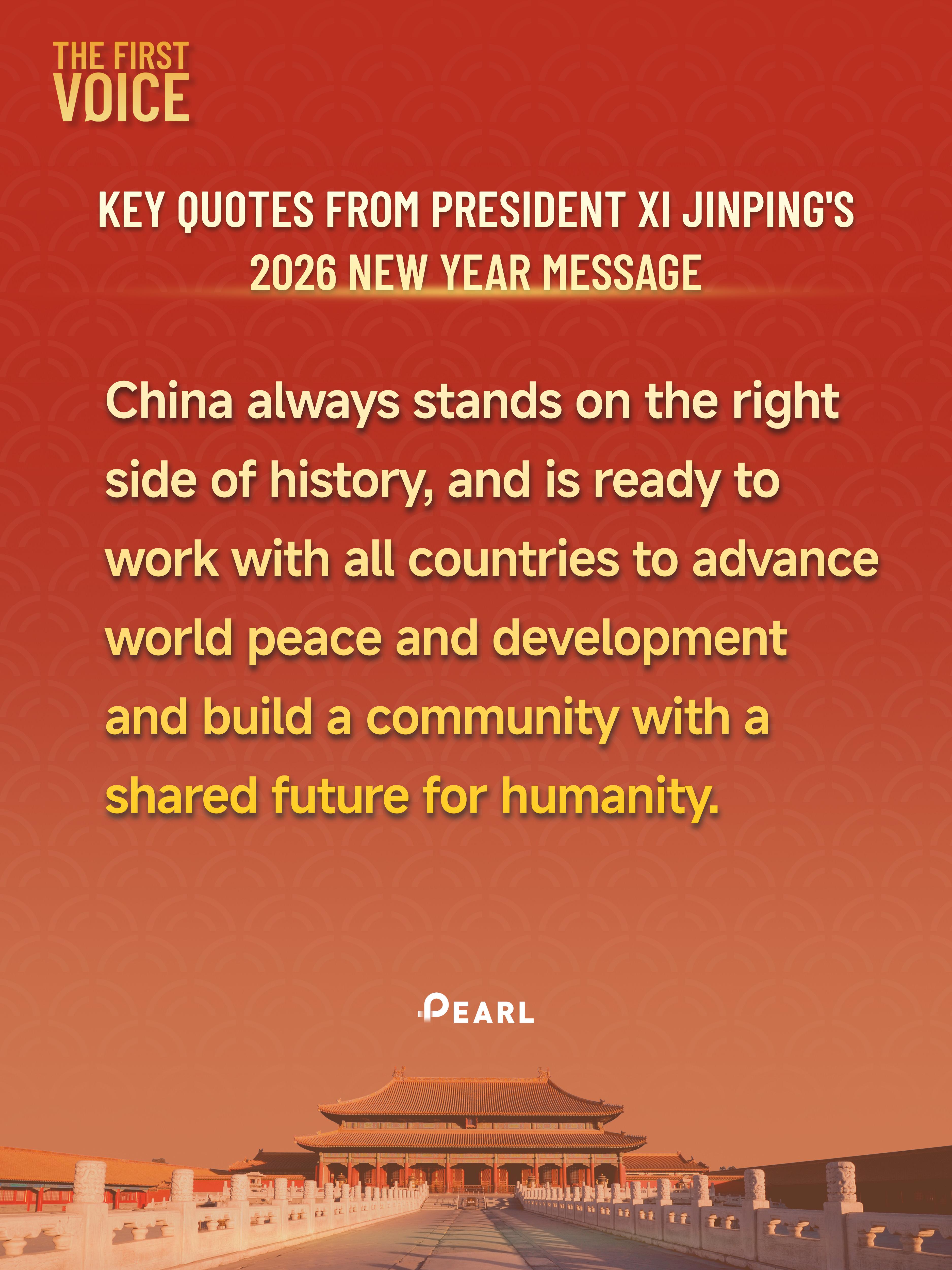 On New Year's Eve, Chinese President Xi Jinping delivered 2026 New Year message. The following are the key quotes from the message.
