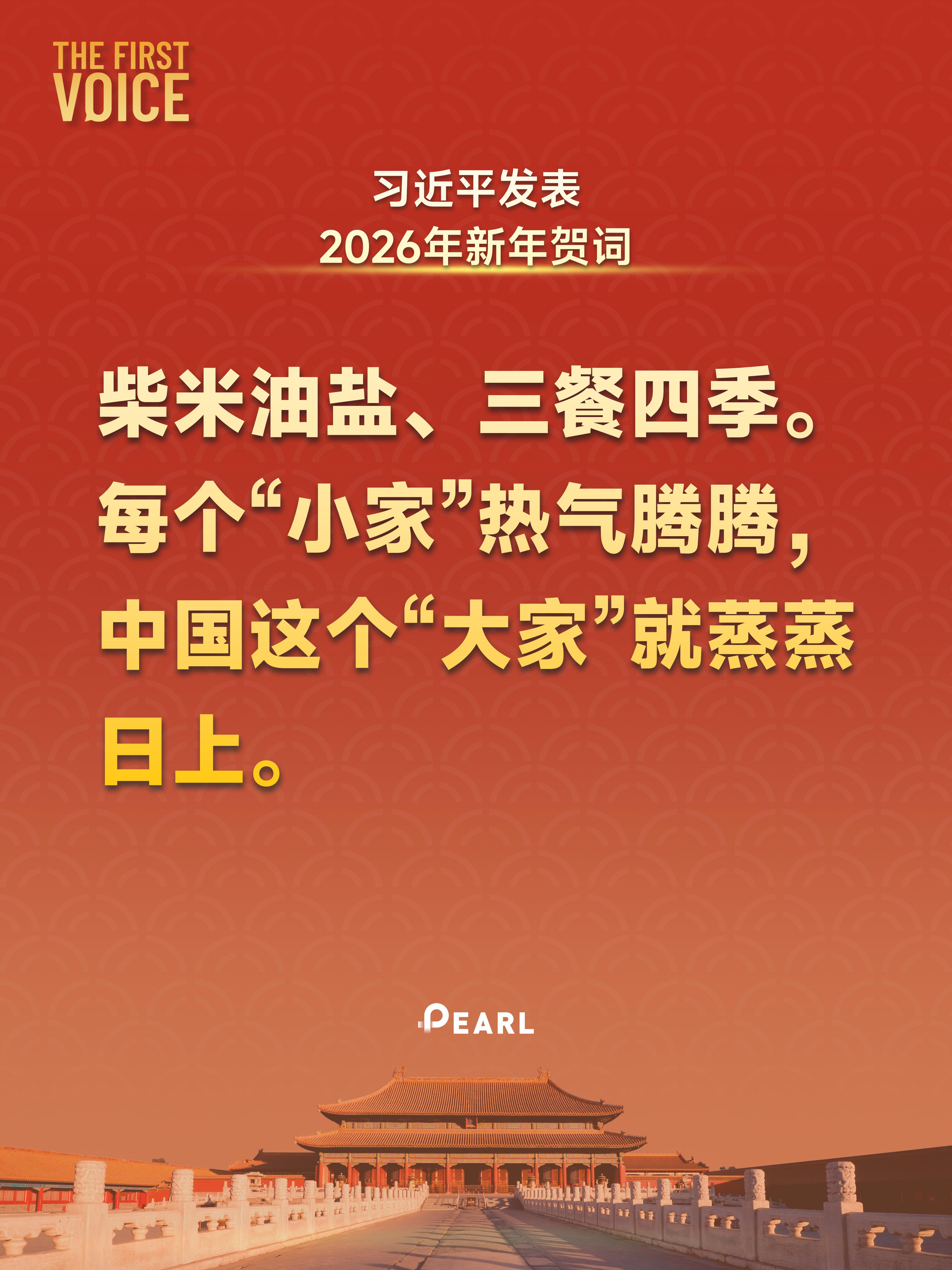 新年前夕,国家主席习近平发表了二〇二六年新年贺词。以下是贺词金句。