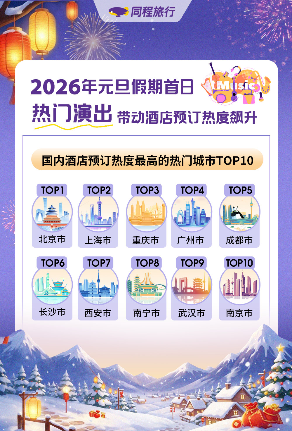 热门赛事和演出活动成为拉动假期消费的重要引擎。同程旅行报告显示,截至12月31日,跨年夜及元旦假期演出票务产品预订量同比上涨超1倍,广州、深圳两地热门演出超百场,部分门票提前15天售罄。
