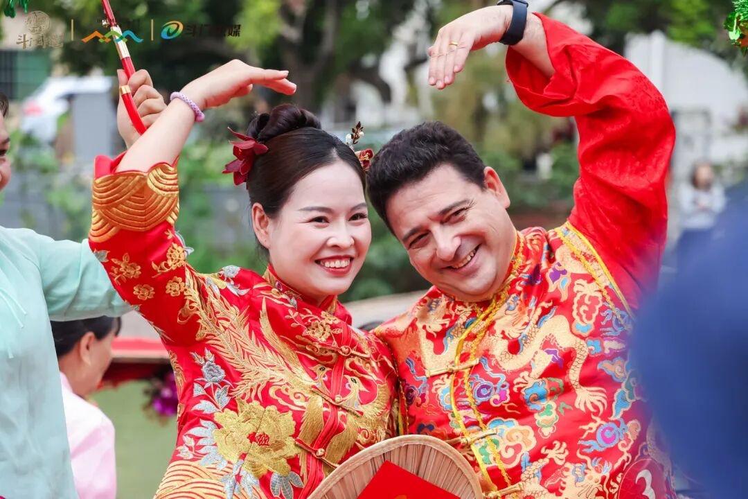 “来中国多年,一直向往妻子家乡的民俗,今天终于亲身感受!”葡萄牙新郎高俊伟难掩激动。午时,新娘头簪兰花、登船祭龙王,将喜酒轻洒水中,祈愿夫妻和睦、家业兴旺。咸水歌声里,花船破碧波,缓缓驶向中联码头。澳门新郎李伟业早早守候岸旁,牵过新娘之手时感慨:“红船驶来的那一刻,真正懂了‘水为媒’的浪漫。”