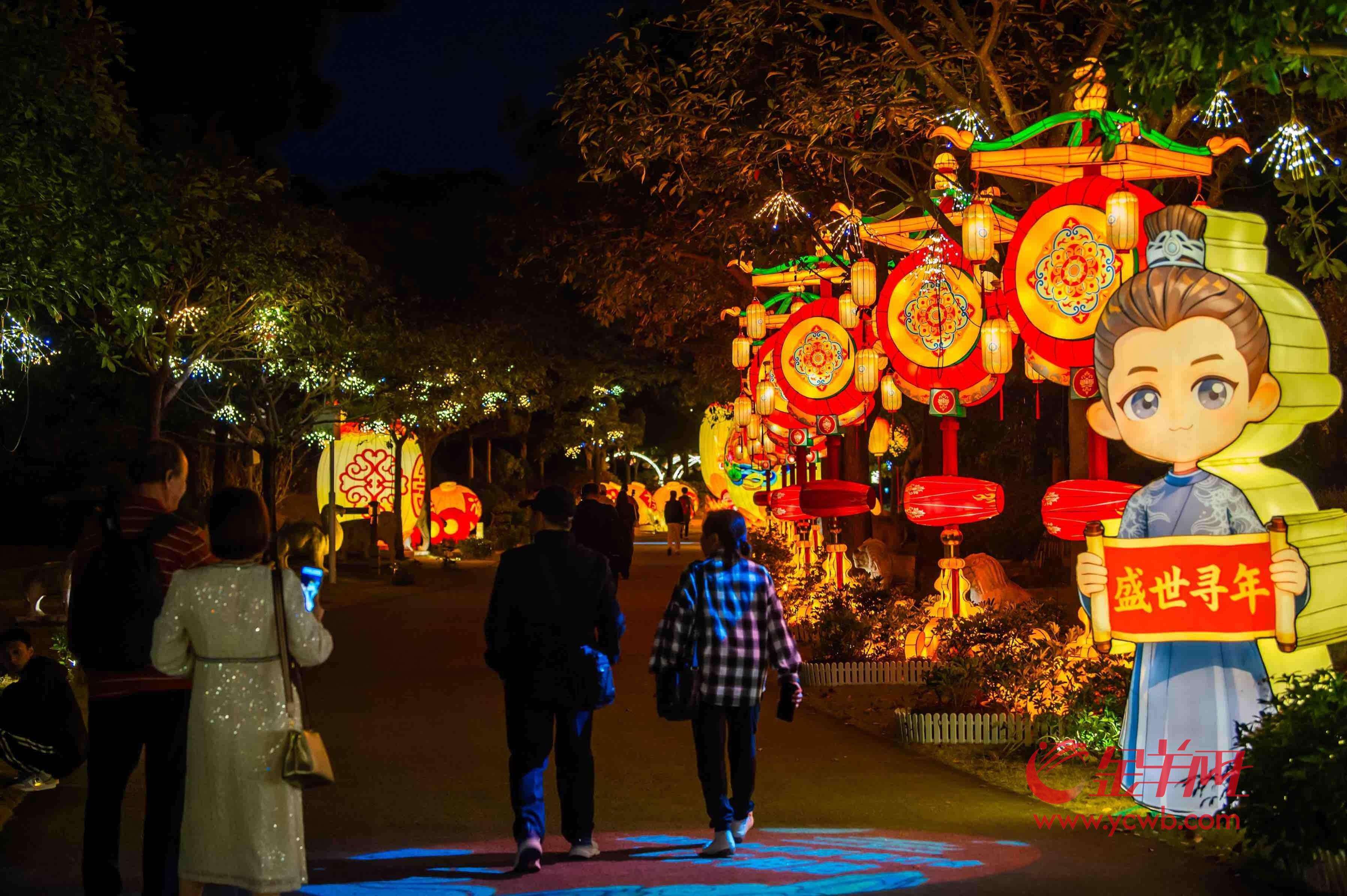 夜幕降临,新春非遗灯会璀璨登场。主环道上各类主题灯组依次铺展,《非遗大湾区》《骏马奔腾》等非遗主题灯组,搭配故宫文化IP灯组,将传统纹样、非遗元素与现代灯光技术相融,结合夜间演艺、NPC互动,打造可观可游可拍的夜间消费场景,尽显新年喜庆。