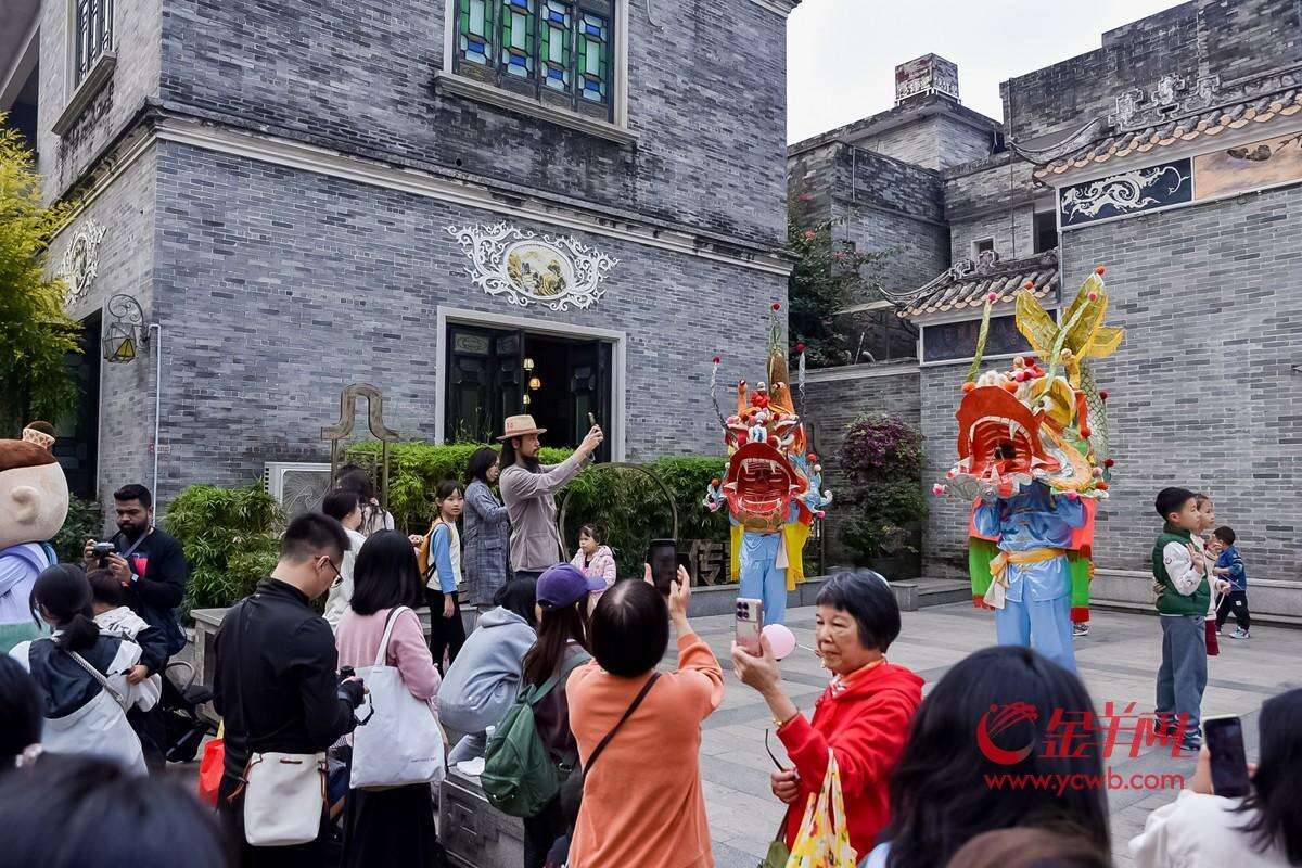 节日期间,每日11:00与15:00,沙湾鳌鱼与IP形象“沙沙湾湾”从南门出发,沿大巷涌路、安宁广场、车陂街巡游至留耕堂,灵动表演与街巷古韵相映成趣。