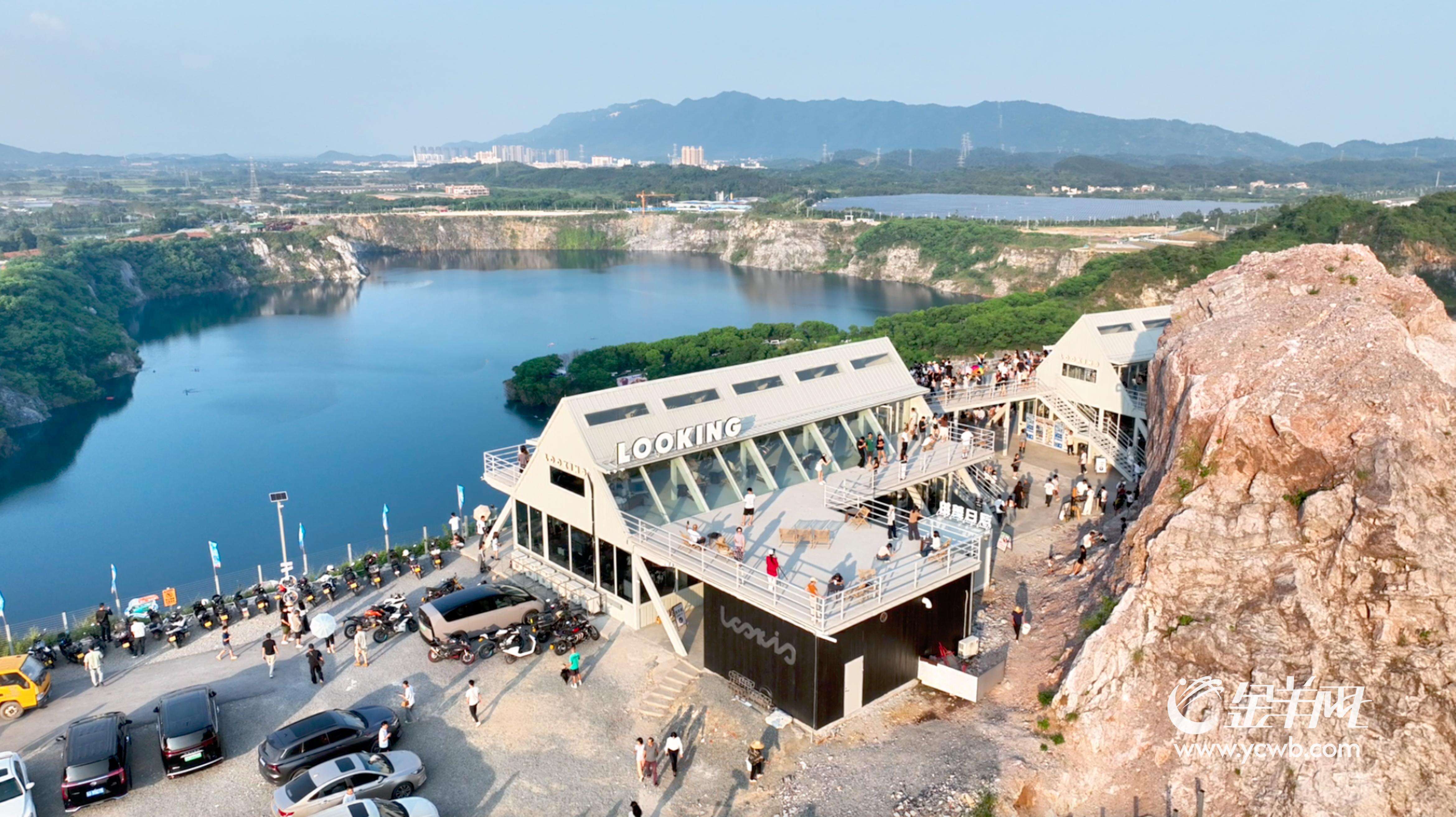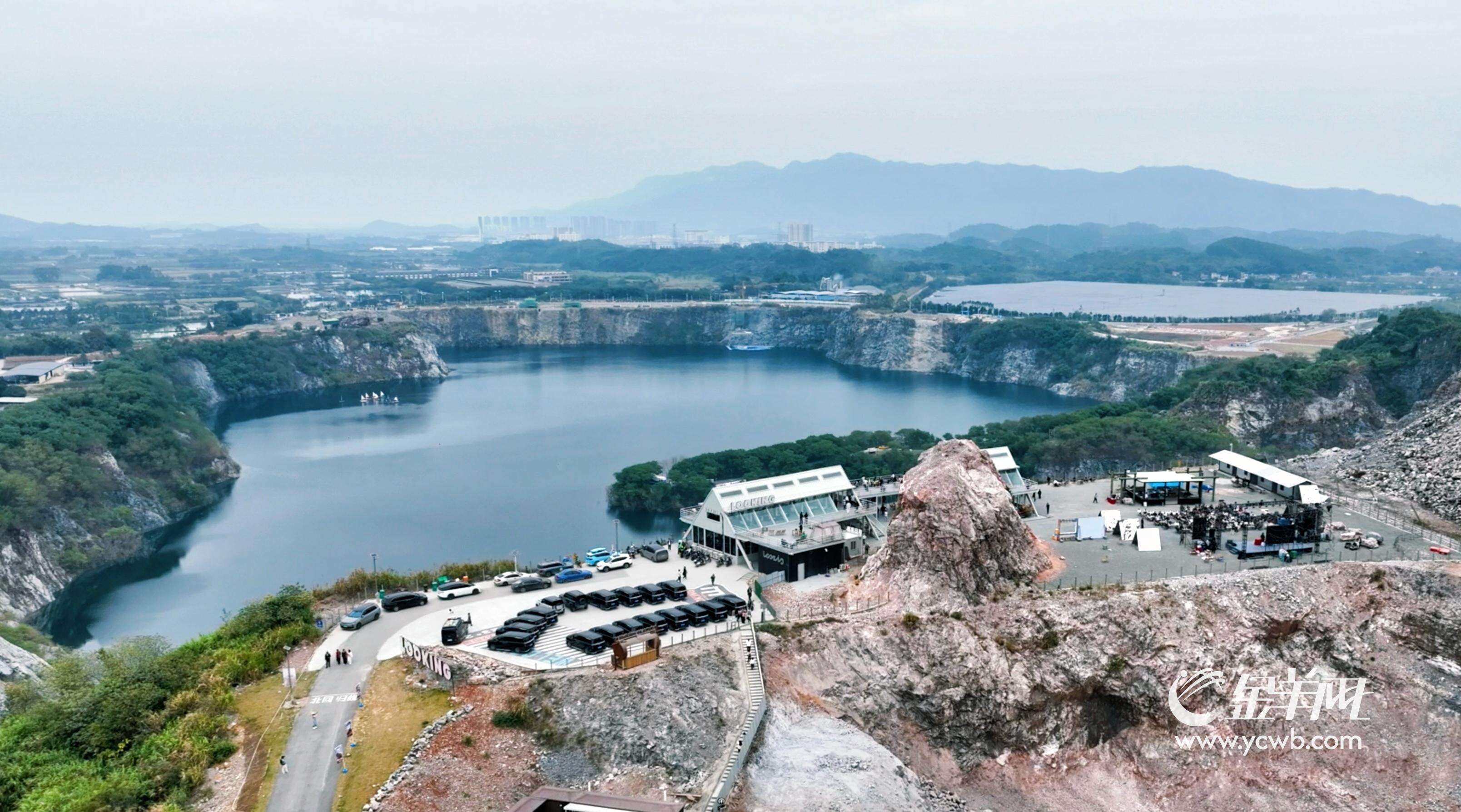 午后阳光斜照,佛山三水区南山镇关山肚矿山湖波光潋滟,人称“蓝眼泪”。崖边一家名为“浮日蓝矿”的咖啡店外,人流络绎不绝。年轻的身影簇拥在观景平台上,等待捕捉落日余晖为山体披上金纱的瞬间——大湾区版“日照金山”,正成为社交媒体上炙手可热的风景。而数年前,这里还是一片荒废十余载、机器声绝的矿坑。