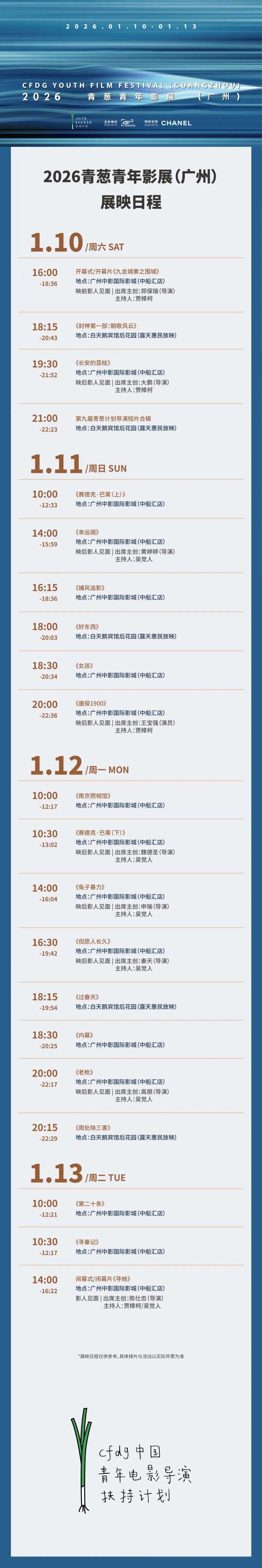 2026青葱青年影展(广州)部分影片将于白天鹅宾馆举行露天惠民放映,展映影片将于明日正式开票并开放预约。