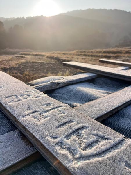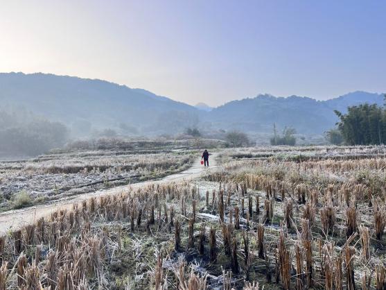At Lvtian Town on the northern slopes of Conghua District, Guangzhou City, a rare frost-tinted tableau unfolds—an uncommon winter sight in Lingnan.Situated at a higher elevation, the town’s mountain climate brings pronounced day–night temperature differences. In winter, nocturnal radiative cooling causes moisture in the air to crystallize into white frost, blanketing fields, crops and branches. This shimmering frost not only creates a seasonal spectacle, but also nurtures the distinctive flavors and produce unique to Lvtian.