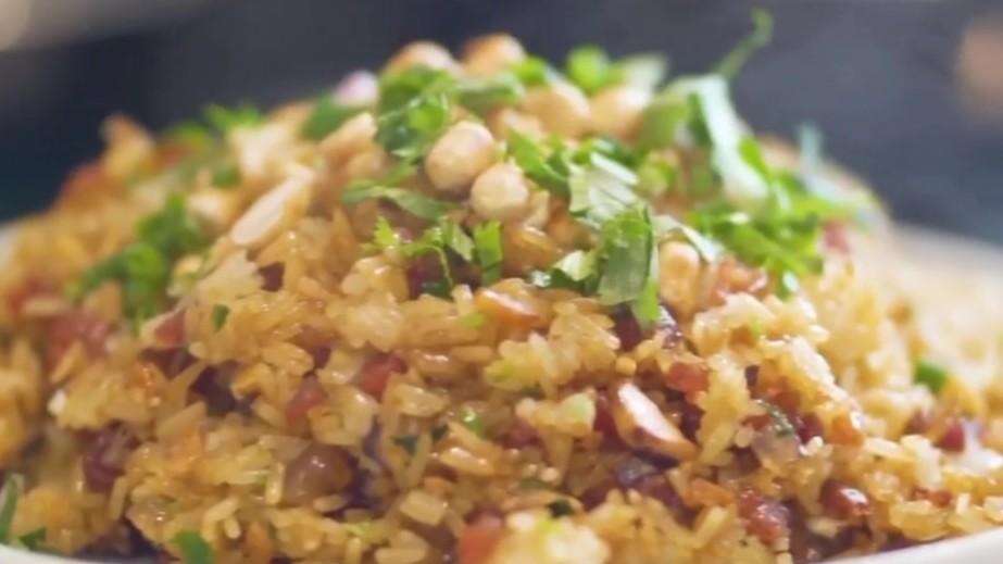 糯米饭最常见的做法是将糯米先蒸熟或蒸至半熟,再搭配腊肉、腊肠、冬菇、鸡蛋丝、虾米、花生、葱花等各种“惹味”配料一起炒制。但如果要评选出糯米制作的食品菜肴里最美味的,那必然要投票给“生炒糯米饭”。